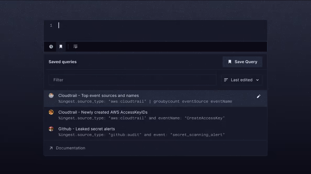 Users can now save queries and share with their team. This should reduce the need to tab-switch between internal wiki pages and the search tool, and it should also help new team members become productive faster.