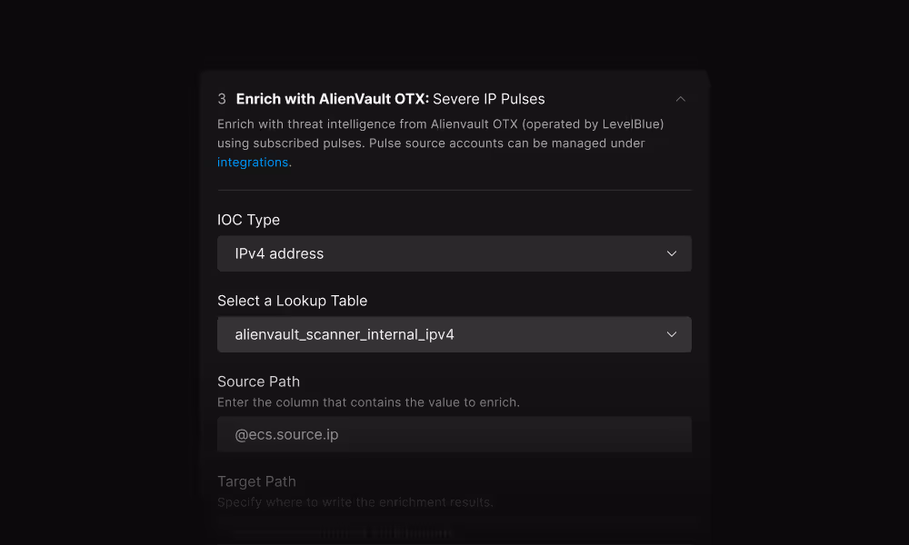 Add organizational and threat intelligence context during ingestion. All enrichment happens at indexing time, making the context immediately searchable for investigations and detections.