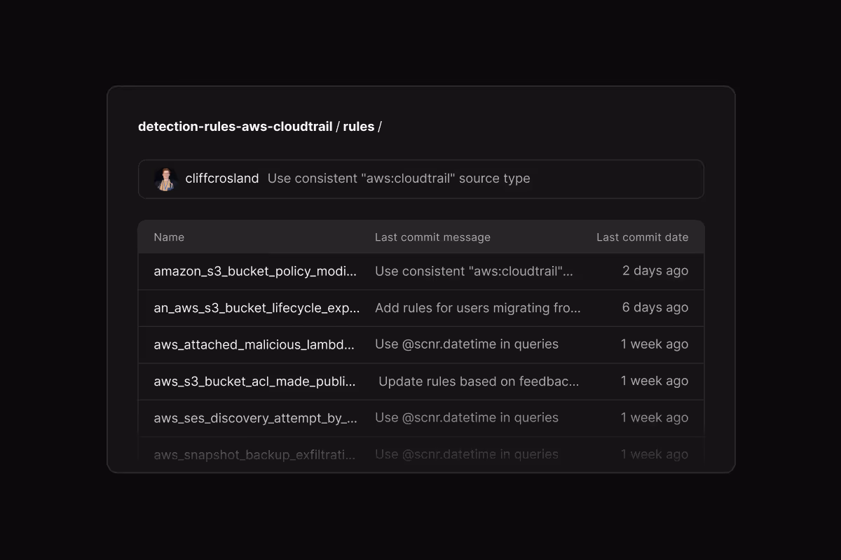 Manage detection rules in GitHub alongside your code. Review changes, test in CI/CD, and deploy with confidence.