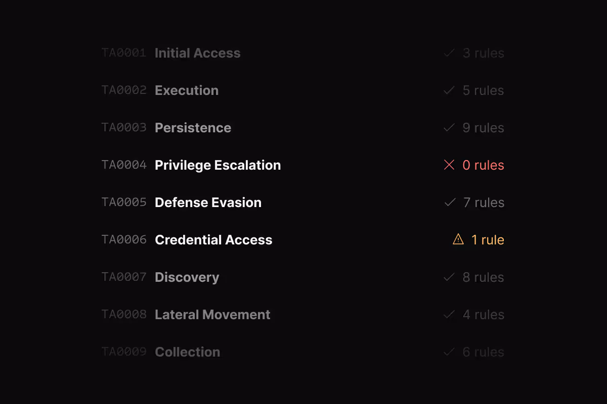 AI reviews your detection rules, maps to MITRE ATT&CK, identifies coverage gaps, and suggests new detections based on your environment and threat landscape.